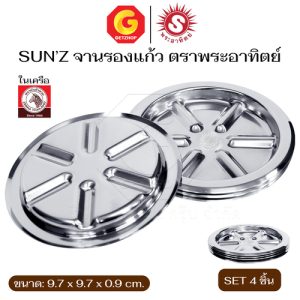 • Sun จานรองแก้ว จานรองสแตนเลส 9.7 ซม สแตนเลส430 ตราพระอาทิตย์ ถาดรองแก้วสแตนเลส (320226) /Set 4 ชิ้น