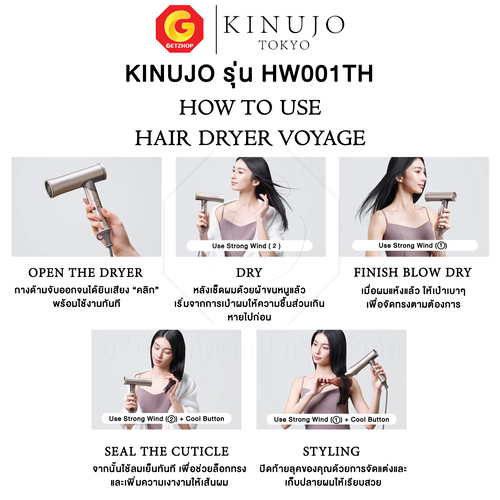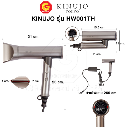 1.คินูโจะ ไดร์เป่าผม รองรับการใช้งานได้ทุกที่ทั่วโลก ด้วยแรงดันไฟฟ้า 100-240V.