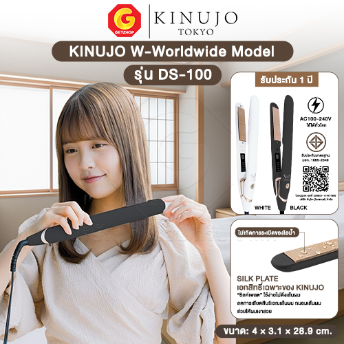 KINUJO W-Worldwide Model เครื่องหนีบผมตรง/ม้วนผม แผ่นรีด Silk Plate ปกป้องเส้นผมจากความร้อน หนีบลื่น ผมเงางามดุจเส้นไหม รุ่น DS-100 (รับประกันศูนย์ไทย)