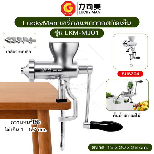 LuckyMan เครื่องแยกกากผักและผลไม้ เครื่องสกัดเย็น Manual Juicer Extractor รุ่น LKM-MJ01 (เกลียวลึก)