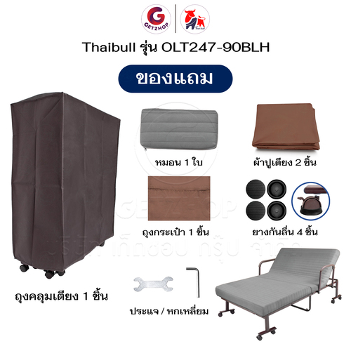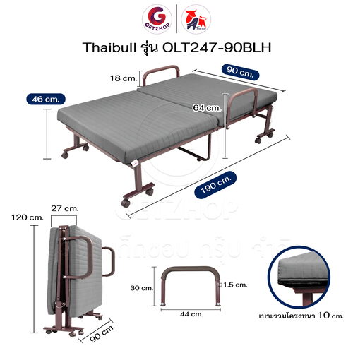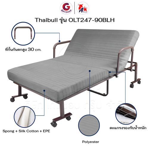 Thaibull เตียงนอน 3 ฟุต เตียงปรับระดับได้ เตียงผู้ป่วย เตียงเสริม เตียงพับทรงสูง 46 ซม. Fold bed Extra bed รุ่น OLT247-90BLH พร้อมของแถม
