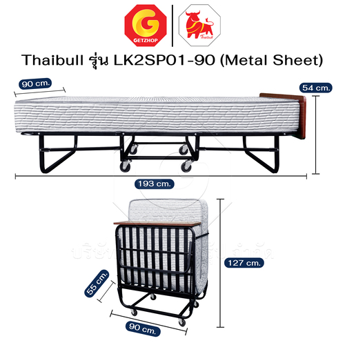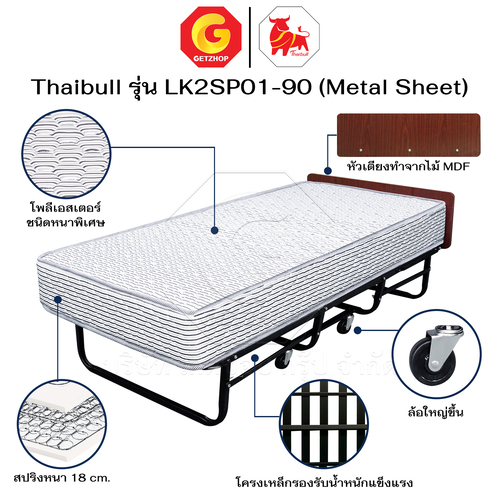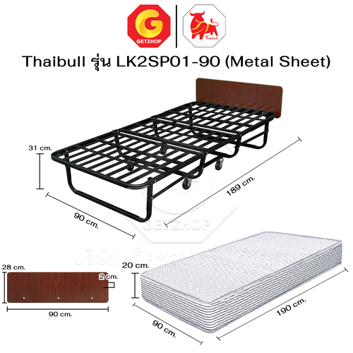 Thaibull เตียงสปริงพับได้ เตียงนอนเสริมโรงแรม เตียงเสริมพับเก็บได้ เตียงเสริมขนาด 3 ฟุต รุ่น LK2SP01-90 (Metal Sheet)