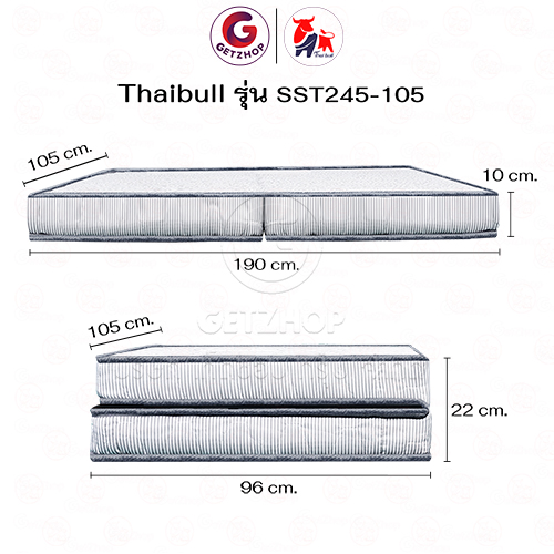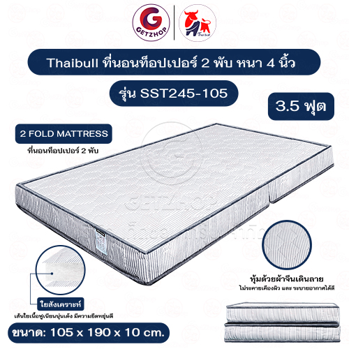Thaibull เบาะที่นอนใยสังเคราะห์ เบาะเตียงนอน เบาะรองนอน ขนาด 3.5 ฟุต หนา 4 นิ้ว รุ่น SST245-105 (แบบพับได้)