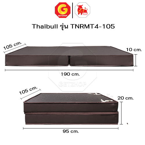 Thaibull mattress, foldable bed, leather-covered bed, size 3.5 feet, thickness 4 inches, model TNRMT4-105 (Brown)Features