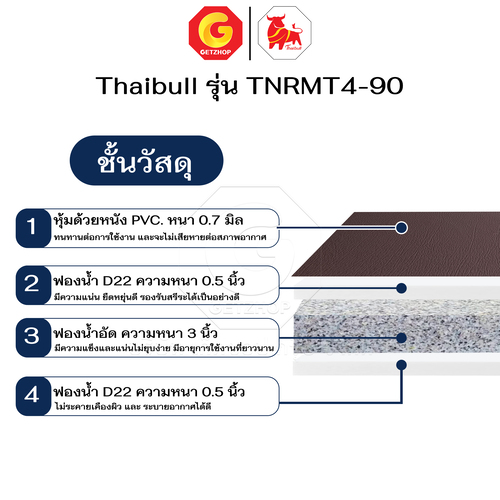 Thaibull ที่นอน เบาะเตียงนอนพับได้ เตียงหุ้มหนัง ขนาด 3 ฟุต หนา 4 นิ้ว รุ่น TNRMT4-90 (Brown)