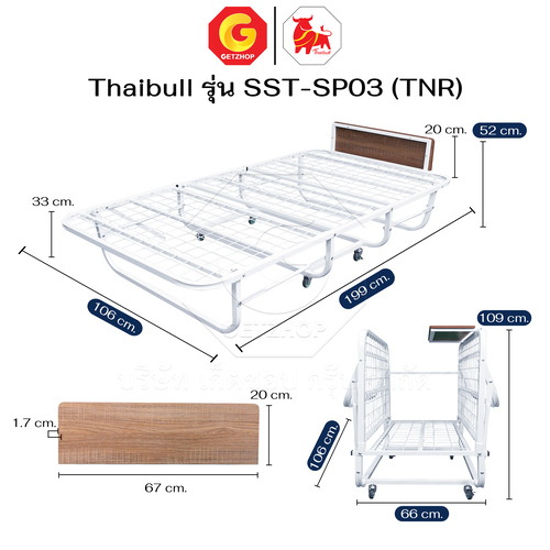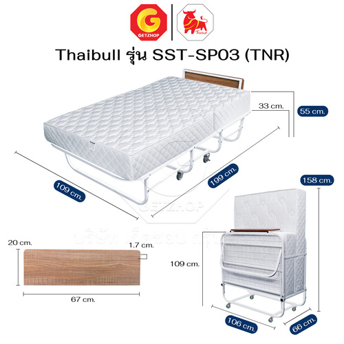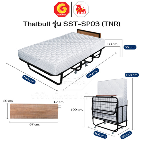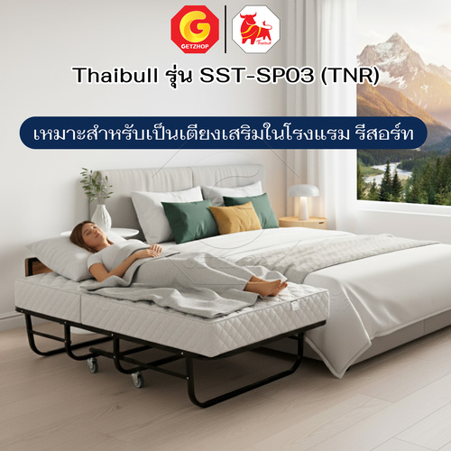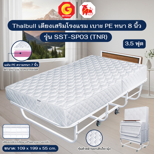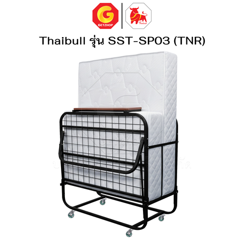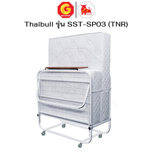 Thaibull เตียงนอนพร้อมเบาะ 3.5 ฟุต เตียงเสริมโรงแรม เบาะหนา 8 นิ้ว พับ1/3 มีล้อ รุ่น SST-SP03(TNR)