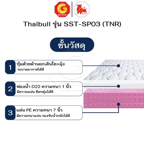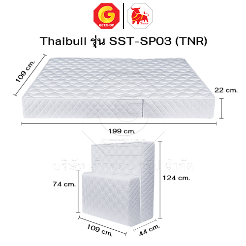 Thaibull ที่นอน PE เบาะเตียงนอน 3.5 ฟุต เบาะรองพื้น Topper เบาะหนา 8 นิ้ว พับ1/3 รุ่น TNRMT8-105 (พับไม่เท่ากัน)