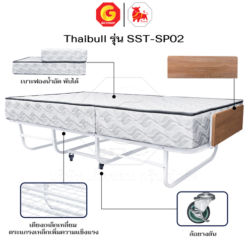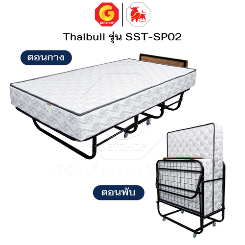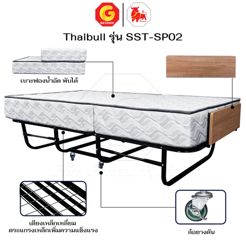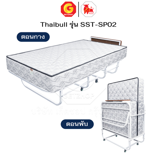 Thaibull เตียงพร้อมท็อปเปอร์ 2 พับ เตียงเสริมโรงแรม เตียงเหล็กพร้อมเบาะ ขนาด 3.5 ฟุต หนา 8.5 นิ้ว พับเก็บได้ รุ่น SST-SP02 (มีล้อ)