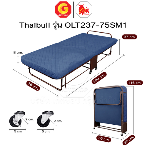 Thaibull เตียงพับอเนกประสงค์ เตียงนอนพับได้ เตียงปรับระดับได้ เตียงเสริม รุ่น OLT237-75SM1