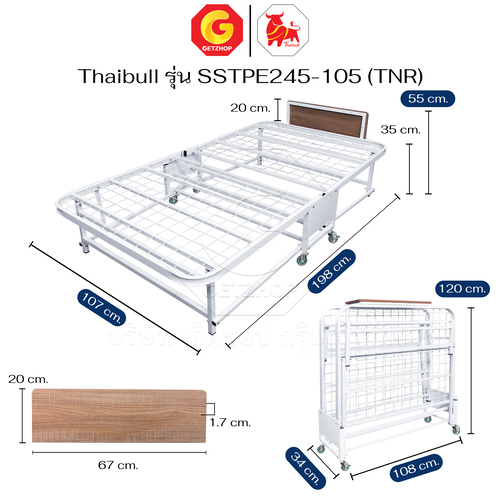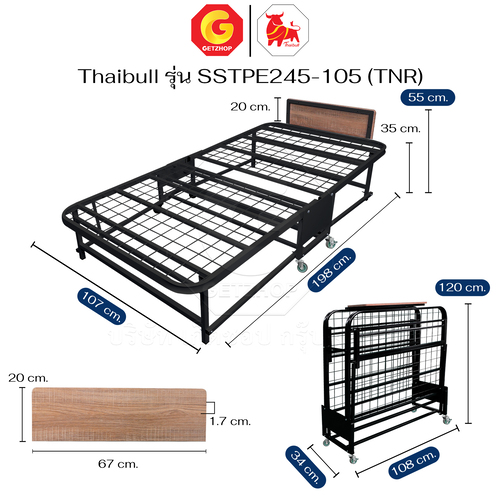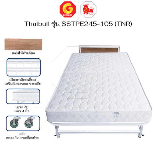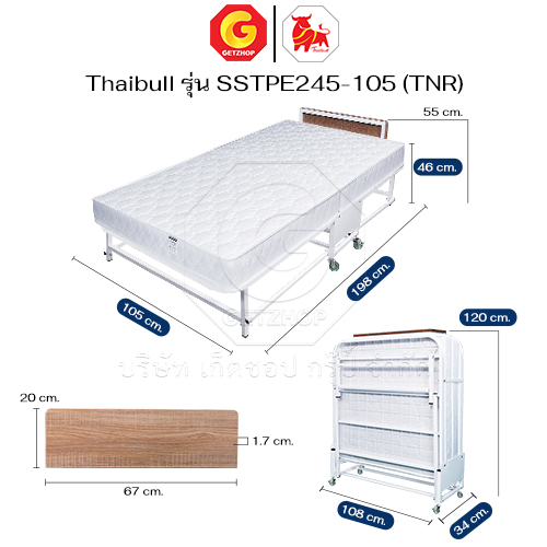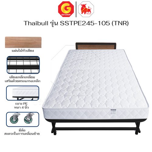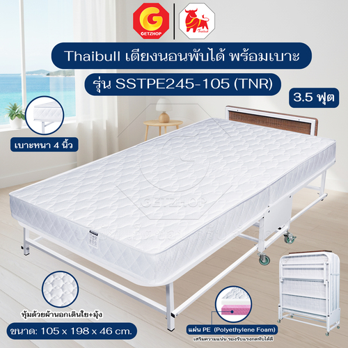 Thaibull เตียงเสริมโรงแรม ที่นอนพร้อมเบาะ SSTPE245-105 (TNR) เตียงนอนพับได้พร้อมเบาะ PE ขนาด 3.5 ฟุต (JACQUARD)