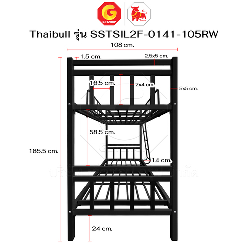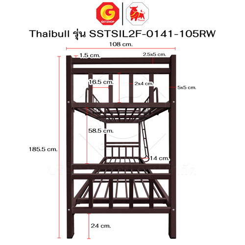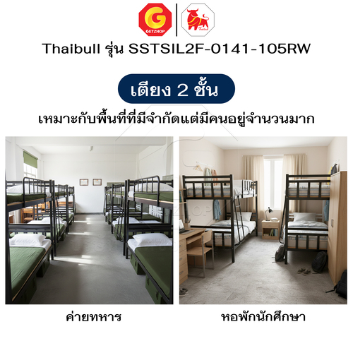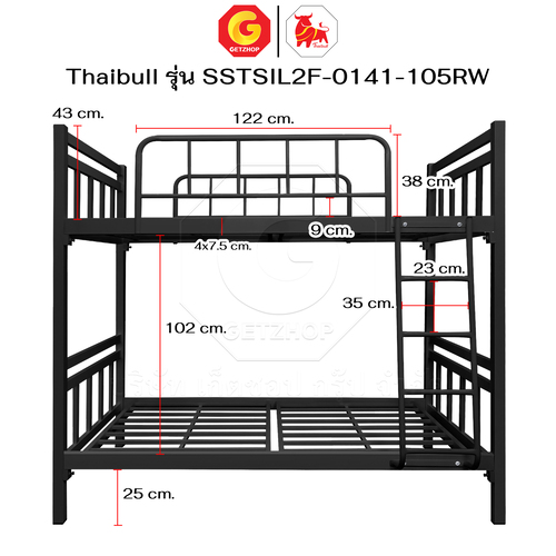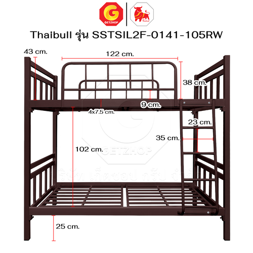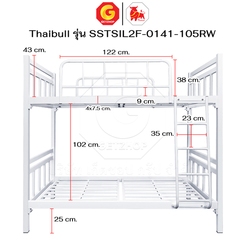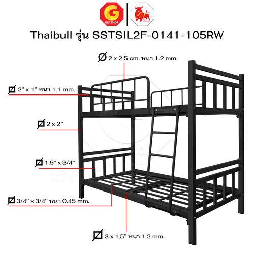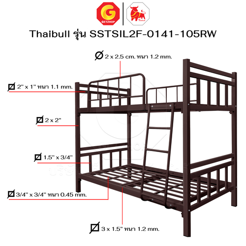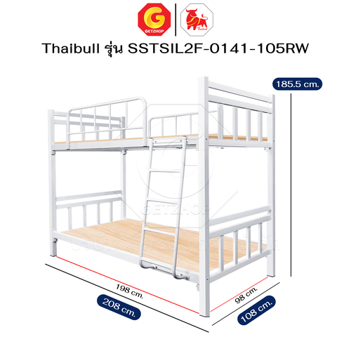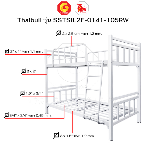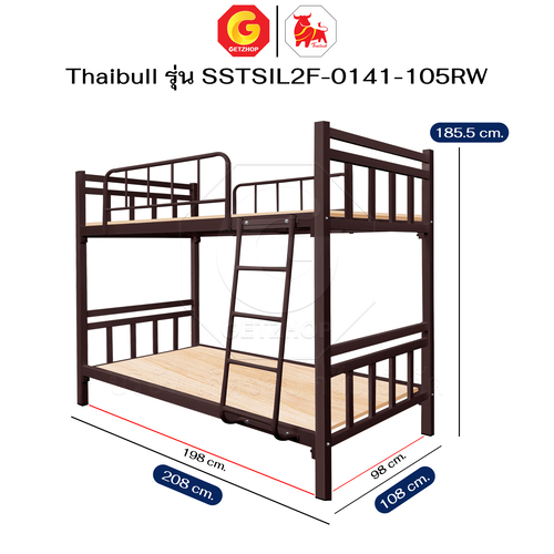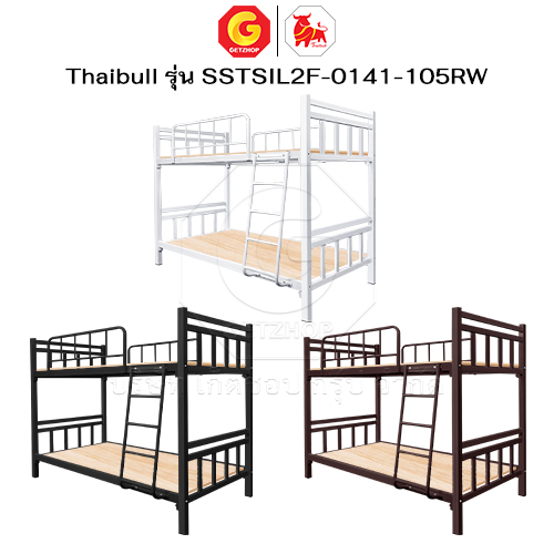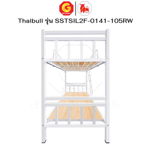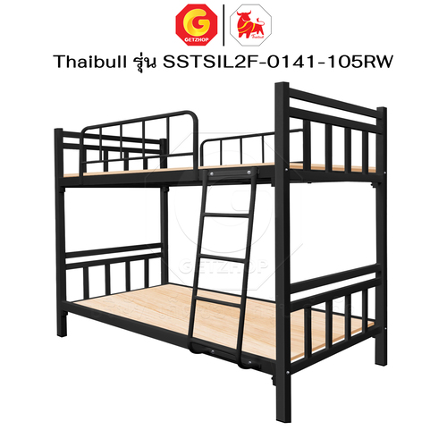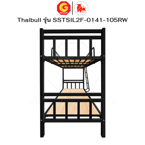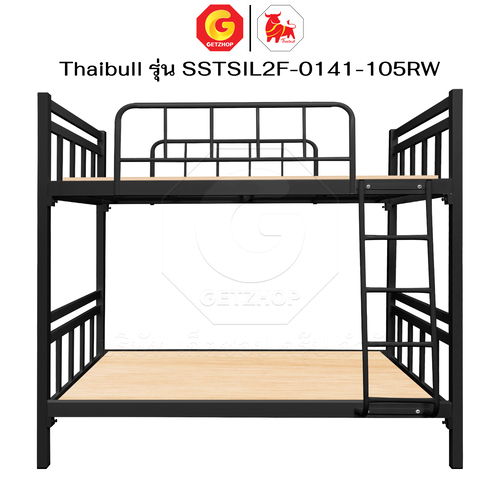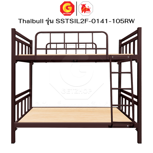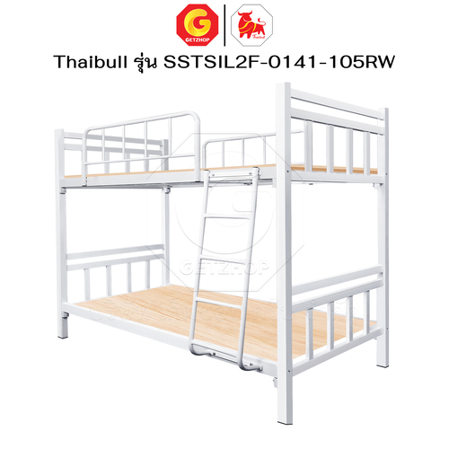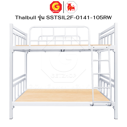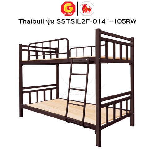 Thaibull เตียงเหล็กระแนง 3.5 ฟุต เตียง 2 ชั้น พร้อมแผ่นไม้ Silk ขาเหลี่ยม 3″ซิลล์ รุ่น SSTSIL2F-0141-105RW