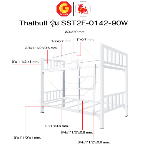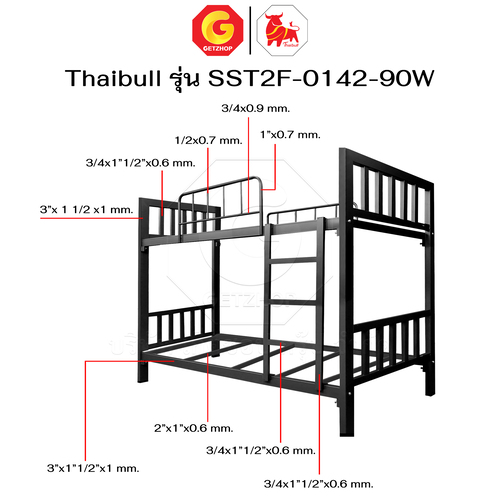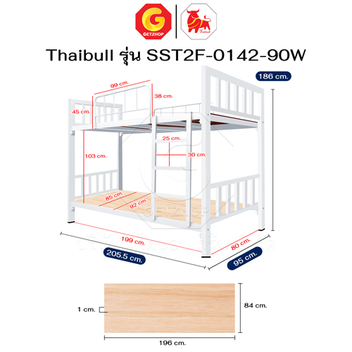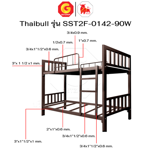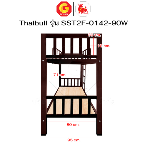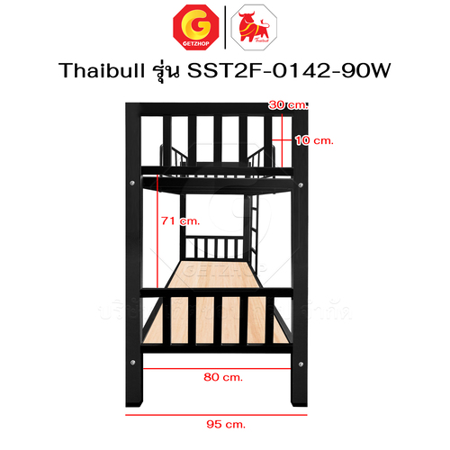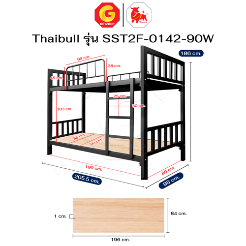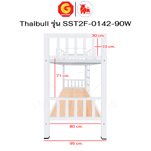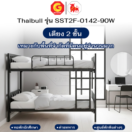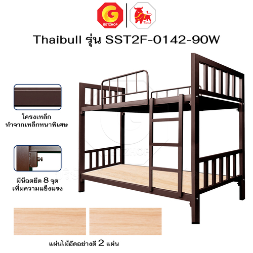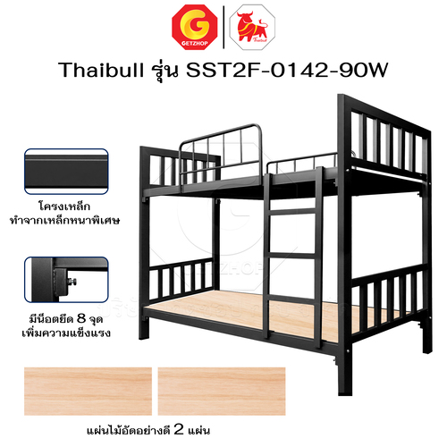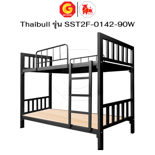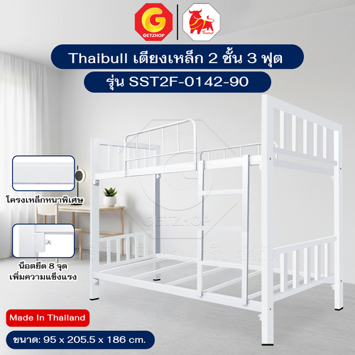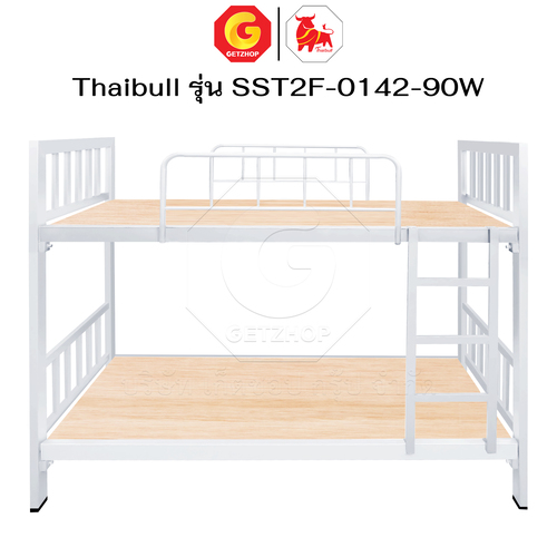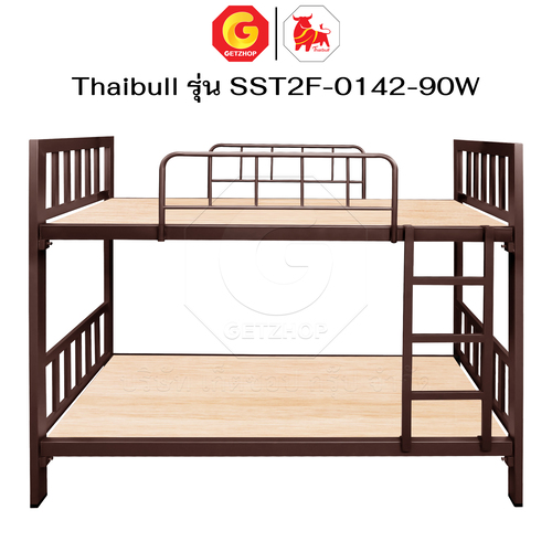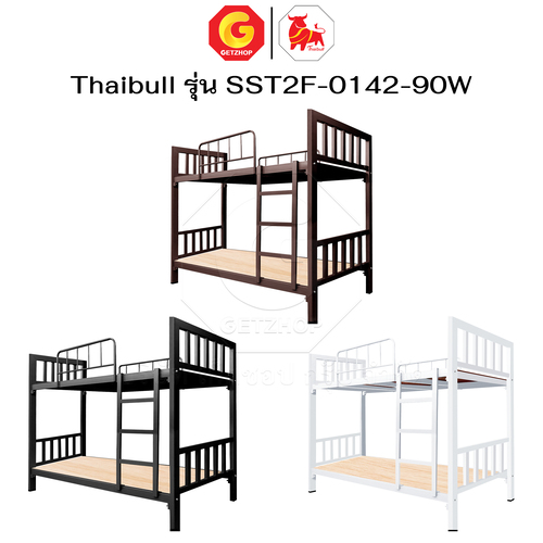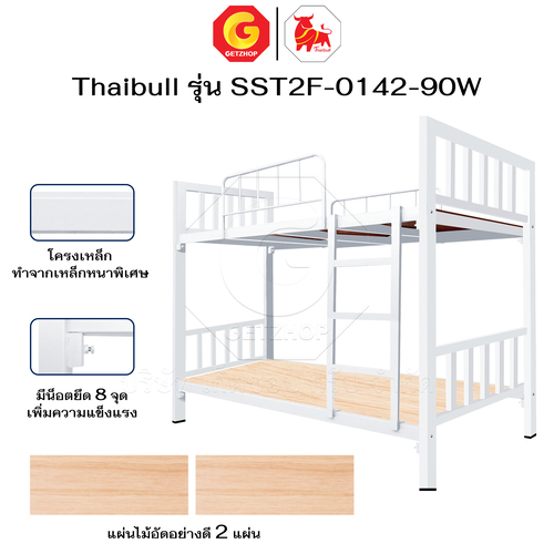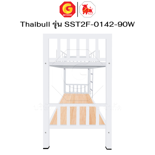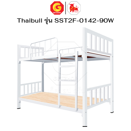Thaibull เตียงเหล็ก 2 ชั้น ขนาด 3 ฟุต เตียงแข็งแรง พร้อมไม้รองเตียง SST2F-0142-90W (ผลิตในไทย)