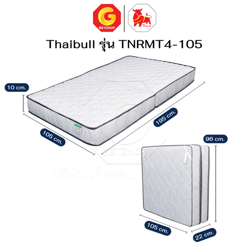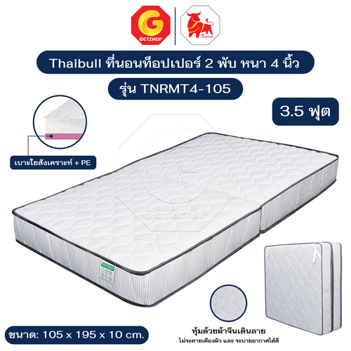 Thaibull เบาะที่นอนใยสังเคราะห์+PE เบาะเตียงนอน เบาะรองนอน เบาะนอนขนาด 3.5 ฟุต หนา 4 นิ้ว รุ่น TNRMT4-105 (แบบพับได้)