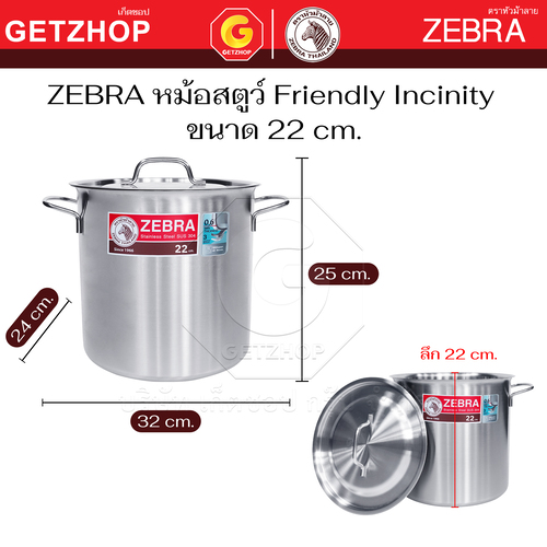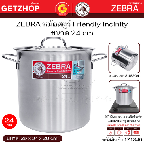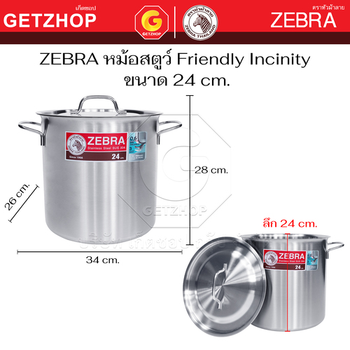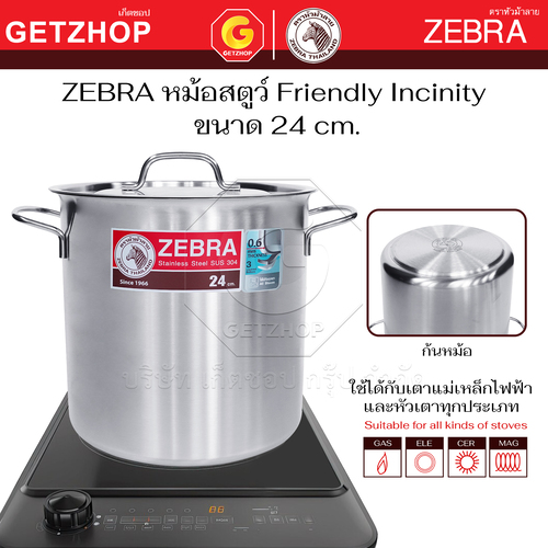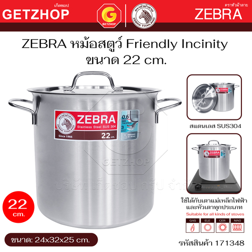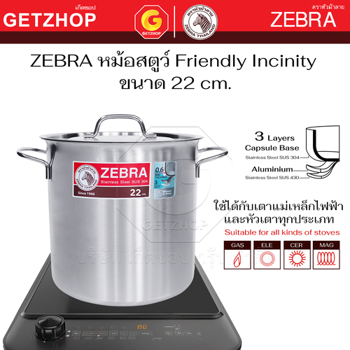 Zebra หม้อสตูว์ Stock Pot Friendly Incinity ขนาด 22 cm. และ 24 cm.ใช้กับ เตาแม่เหล็กไฟฟ้า เตาไฟฟ้า เตาแก๊สได้